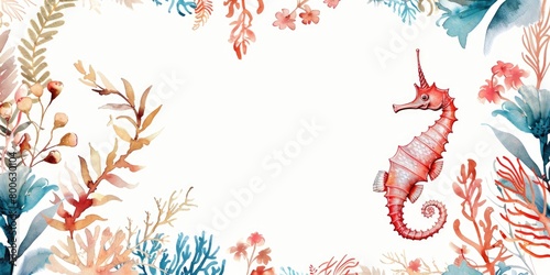 Fototapeta premium Underwater scene with a sea horse and aquatic plants. Perfect for marine life...