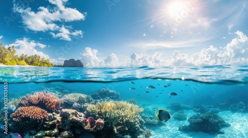 Fototapeta premium Underwater Scene with Coral Reef and Tropical Fish