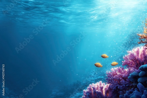 Naklejka premium Underwater Scene with Fish and Coral Reef