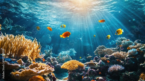 © Lilly, Obraz premium Underwater scene with fish and coral reef creating a vibrant marine environment