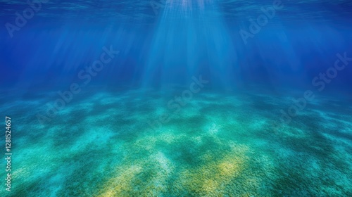 © Olga, Obraz premium Underwater scene with gentle sunlight rays illuminating vibrant