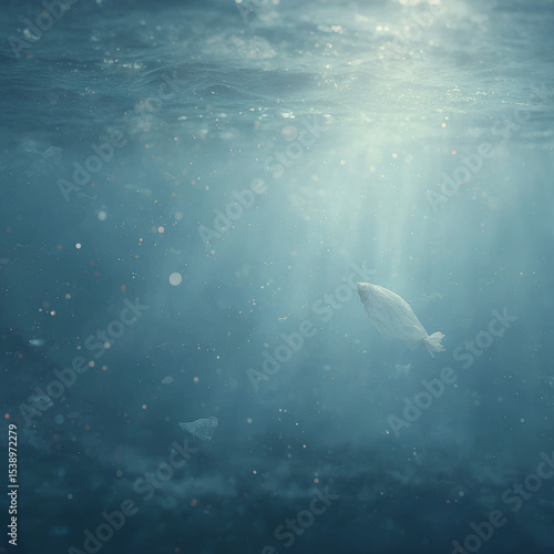 © Liliia, Fototapeta premium Underwater Scene With Glowing plastic Fish