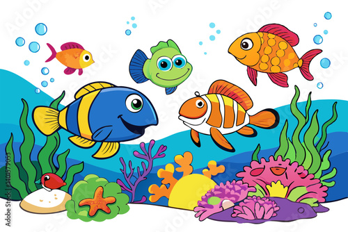 © Hasan, Naklejka premium Underwater Scene with Jellyfish and Turtles