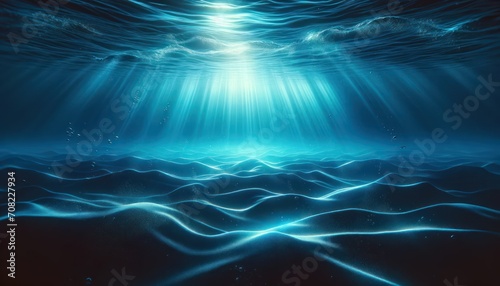 Fototapeta premium Underwater scene with light rays and wavesinside the ocean