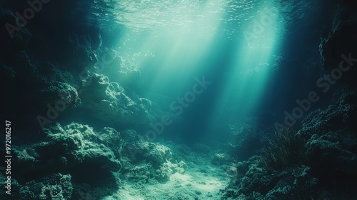 Fototapeta premium Underwater Scene with Sunlight Rays and Coral Reefs