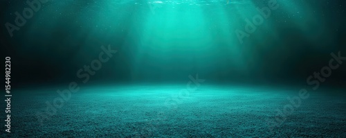 Fototapeta premium Underwater scene with sunlight rays penetrating deep blue water, illuminating...