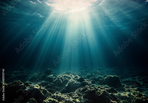 Fototapeta premium Underwater Scene with Sunlight Rays Piercing Crystal Clear Water