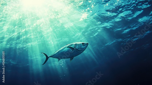 Naklejka premium Underwater Scene with Swimming Fish in Blue Waters