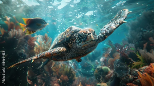 © Creative Stock Ai, Obraz premium Underwater Sea Creatures Fish and Turtle