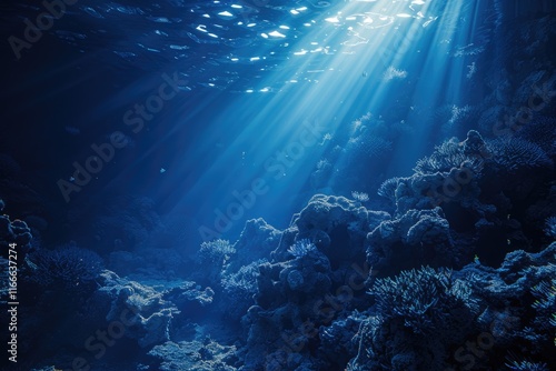 © Anjali, Fototapeta premium Underwater Sea Deep Abyss With Blue Sun light