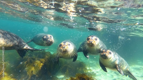 © Nonton, Fototapeta premium Underwater Seals in Clear Water