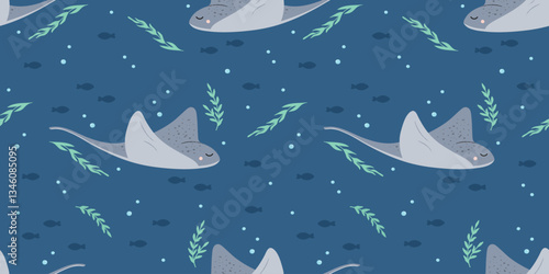 © Mila Dobraya, Obraz premium Underwater seamless pattern with stingray fish