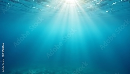 Fototapeta premium Underwater Serenity: Sunbeams Dancing in the Deep Blue Ocean