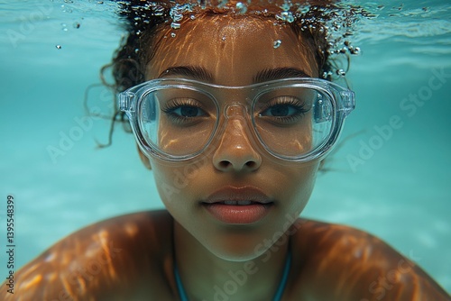 © Marcos Kulenkampff, Naklejka premium Underwater shoot of a woman plunging in a swimming pool