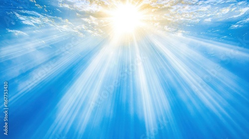 © novitasary, Fototapeta premium Underwater Sunbeams: A Celestial Dance of Light and Water
