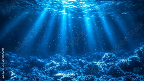 Fototapeta premium Underwater Sunlight Beams on Coral Reef