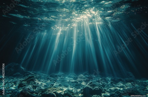 Fototapeta premium Underwater Sunlight Beams Through Ocean Cave
