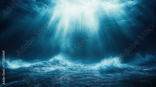 © adiba, Fototapeta premium Underwater Sunlight Piercing Dark Waves