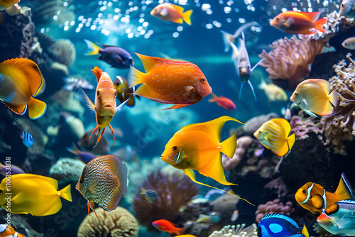 Fototapeta premium Underwater Symphony: An Artistically Illuminated Tropical Fish Aquarium...