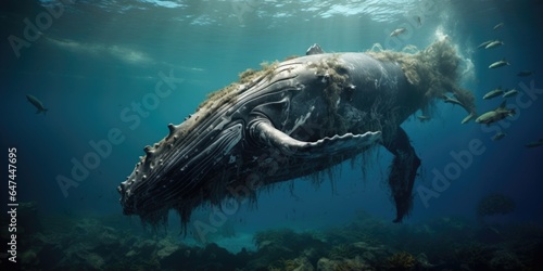 Obraz premium Underwater view of a whale falling to the seabed after it dies. When this...