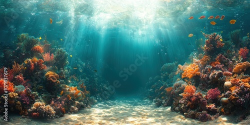 Fototapeta premium Underwater View of Colorful Coral Reef with Sunbeams