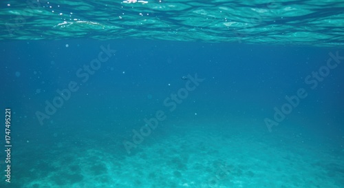 © LiaSyafitri, Fototapeta premium Underwater view of ocean floor with rippling surface and distant fish