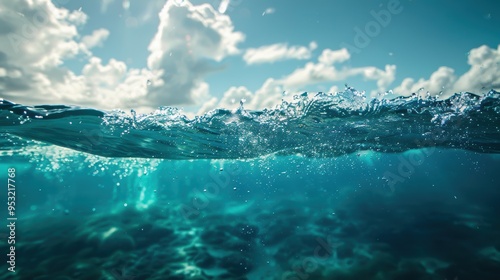 © PICK YOUR POV, Fototapeta premium Underwater wave with sunlit clouds.