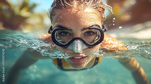 © globe, Fototapeta premium Underwater Woman Snorkeling in Tropical Waters
