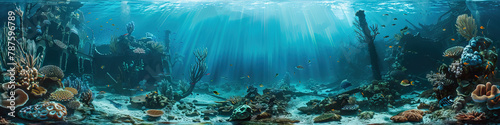 Fototapeta premium Underwater Wonders: Coral Reefs, Marine Life, and Shipwrecks
