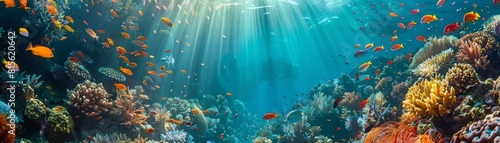 © admin_design, Naklejka premium Underwater world full of amazing creatures.