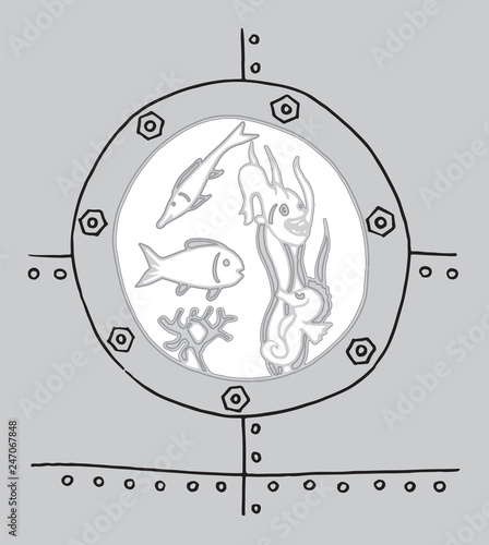 © diamondtetra, Fototapeta premium Underwater world in the bathyscaphe illuminator
