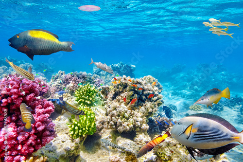 © BRIAN_KINNEY, Obraz premium Underwater world with corals and tropical fish.