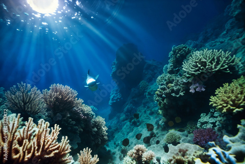 Fototapeta premium Undewater world landscape, reef, sea bottom with corals and seaweeds