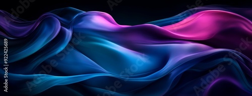Fototapeta premium Undulating and swirling textures create a luxurious texture on this black background with iridescent neon highlights.