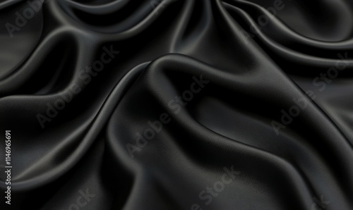 © Galina, Obraz premium Undulating Black Surface with Copy-Space. Modern 3D Minimalist Background