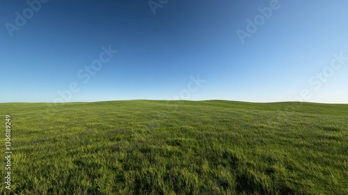 Fototapeta premium Undulating green field under clear blue sky; panoramic view; nature...