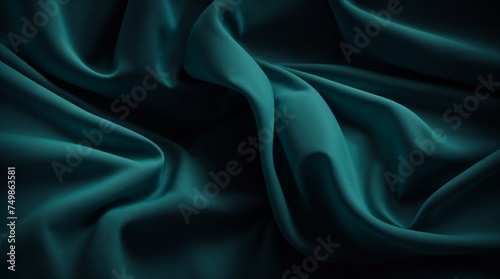 Fototapeta premium Undulating teal fabric conjures a calm and abstract wave-like pattern