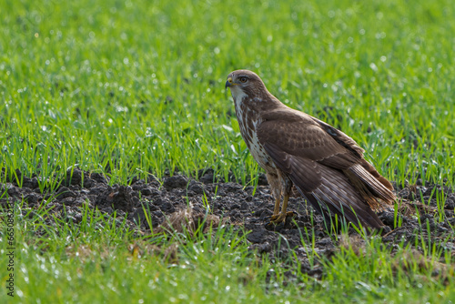 Obraz premium Une buse variable posée au sol au Pays-Bas.