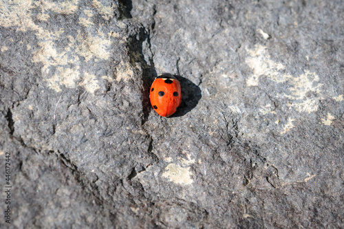 Fototapeta premium une coccinelle vue de dessous sur fond de rocher gris