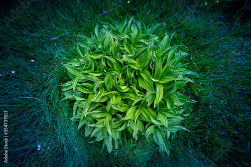 © Olivier Tabary, Obraz premium une grosse plante verte et ronde entourée d'herbe et de petites fleurs