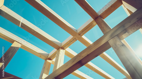 © Gautier Normand, Fototapeta premium Une structure en bois contre un ciel bleu clair.