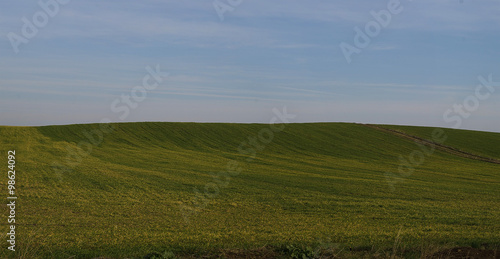© senfoto, Obraz premium Uneven field covered with green grass