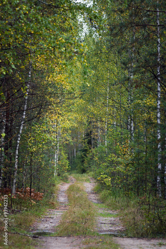 Obraz premium Uneven forest road in summer forest