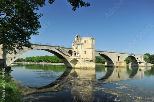 © Sergey, Fototapeta premium Unfinished bridge in Avignon with reflection in river