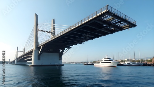 © Dims, Fototapeta premium Unfinished Cable-Stayed Bridge Under Construction Above Coastal Marina