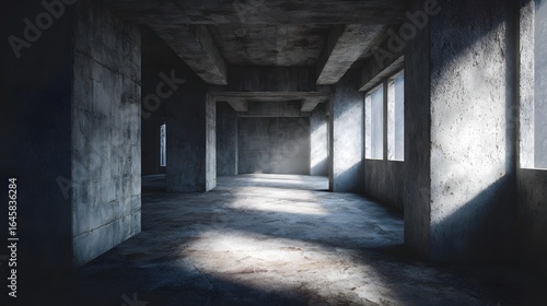 Fototapeta premium Unfinished commercial building interior with raw material lighting