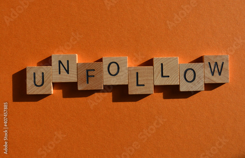 © Josie Elias, Obraz premium Unfollow, word isolated on background