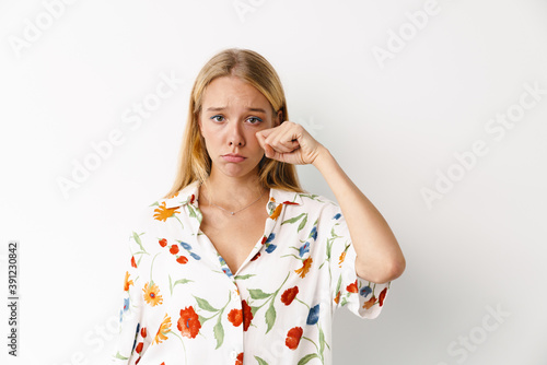 © Drobot Dean, Fototapeta premium Unhappy beautiful girl crying while posing at camera