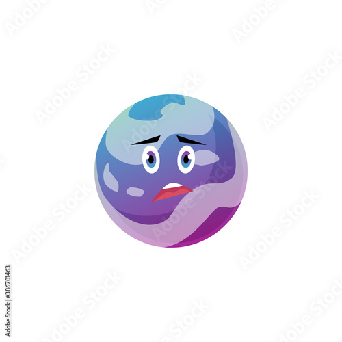 Fototapeta premium Unhappy space planet character with sad face flat .vector illustration isolated.