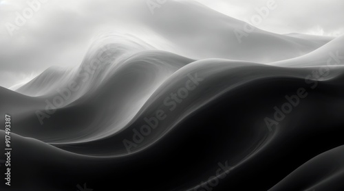 Obraz premium Unhurried grayscale breakers outline an abstract monochromatic bay seascape
